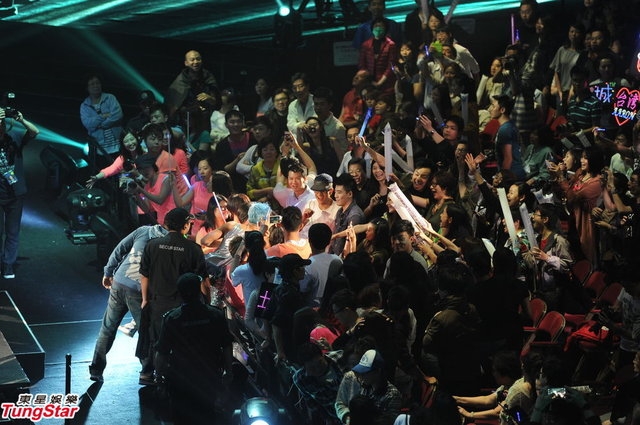 穿上背心示人的郭富城,被指兩度向熊黛林坐于第3行的位置掀衣露點,引來不少粉絲開玩笑請他除褲?串厫劾裳莩獣蟮男荀炝中那榇蠛,還跟不少郭富城的粉絲合照,她還大贊演唱會好看,被問世紀握手是否心甜時,熊黛林指自己是粉絲,并拒談護“城”宣主權之事,最后帶著甜蜜笑容離開。