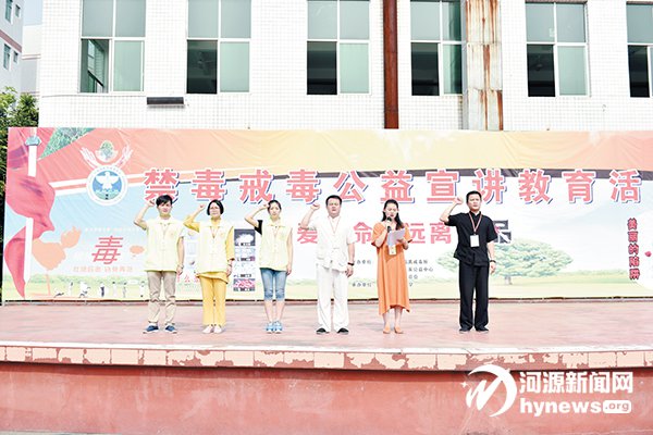 同一天,東源縣禁毒委聯合市強制隔離戒毒所、市積善之家公益中心在東源實驗中學開展主題為“禁毒戒毒公益宣講教育活動”,現場活動由戒毒人員現身說法,使得現場全體2300 名師生進一步增強識毒、防毒、拒毒的意識。