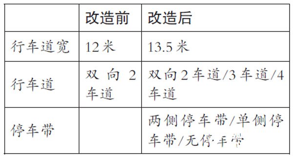 道路改造前后對比(方案一)