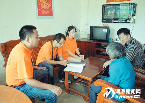 走進新龍村村委會,李姍君(河源市旅 游局旅游監督質量管理所所長,駐村第一 書記)、朱志妙(深圳市天健集團股份有限 公司,駐村工作隊隊長)、杜彬彬(深圳市 天健集團股份有限公司,駐村工作隊隊 員)、陳星宇(深圳市天健集團股份有限公 司,駐村工作隊隊員)4 個人都是穿著統一 的橙紅色服裝,背后印著“精準扶貧、精準 脫貧”的顯眼字樣。今年5 月份,駐村工作 組4 人進駐新龍村后,在辦公地點設置了 接訪室,專門針對扶貧戶核對工作聽取村 民意見。