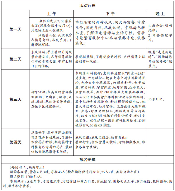 2017寒假“海龜灣”游學(xué)科普冬令營(惠州站)活動安排