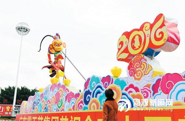 昨日,市區(qū)文化廣場、客家文化公園等地披上“猴裝”。據(jù)了解,今年的猴年主題花燈形式多樣,既有可愛的金絲猴拜年形象,也有齊天大圣揮舞金箍棒形象,美麗的花燈將河源節(jié)日氣氛裝扮得既紅火又喜慶,增添了濃郁的 “年味”,引來不少市民路過時駐足觀賞。