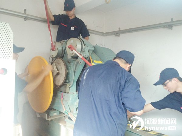 今年6 月份,是全國第15 個(gè)安全生產(chǎn)月。為提高電梯維保單位和使用單位處置電梯突發(fā)故障的能力,規(guī)范應(yīng)急處置程序和措施,提高市民乘梯的安全意識(shí),昨日,市質(zhì)監(jiān)局組織開展了電梯應(yīng)急救援演練。演練模擬東江首府小區(qū)6 位業(yè)主在乘坐電梯時(shí),電梯突發(fā)故障,業(yè)主被困于轎廂內(nèi),通過緊急報(bào)警對(duì)講系統(tǒng)向物業(yè)監(jiān)控室求救。相關(guān)工作人員接到情況后,緊急展開救援。整個(gè)救援過程歷時(shí)14 分鐘,演練取得圓滿成功。圖為救援人員在用人力盤車的方式解救被困人員。