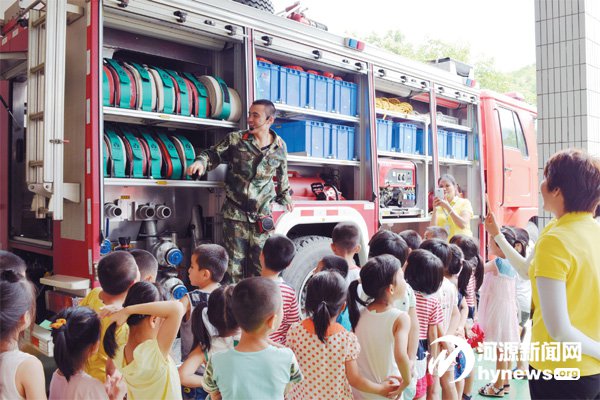 日前,紫金縣公安消防大隊開放消防站,邀請紫金城西幼兒園與附城中學近百名師生走進紅門,零距離體驗消防警營生活,學習消防知識。