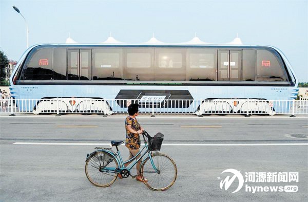 一位市民從正在進(jìn)行路面測(cè)試的巴鐵1 號(hào)試驗(yàn)車(chē)旁經(jīng)過(guò)。 8 月2 日,我國(guó)自行設(shè)計(jì)研制、全面擁有自主知識(shí)產(chǎn)權(quán)的“空中巴士”——巴鐵1 號(hào)試驗(yàn)車(chē),在河北秦皇島北戴河區(qū)開(kāi)始啟動(dòng)路面綜合試驗(yàn),包括剎車(chē)距離、摩擦系數(shù)、耗電等,檢驗(yàn)車(chē)和路、人和車(chē)的關(guān)系。