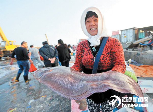 10 月19 日,一條近一米長罕見舌頭魚亮相山東青島南姜戈莊碼頭,整條售價僅150 元。進入秋捕旺季,漁村的大小船只來回穿梭于近海水域,早上出海下午返回。由于收獲頗豐,海鮮賣出白菜價,紅魚1 元/斤起,海捕螃蟹15 元/斤,鷹爪蝦13 元/斤。每逢午后漁船陸續歸來,碼頭即刻圍攏成壯觀的搶購海鮮大軍景象,逶迤數百米。
