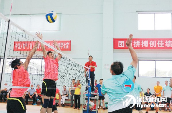 河源代表隊正在與韶關代表隊進行激烈拼搶。日前,由中國人民銀行河源市中心支行承辦的2016 年“河源杯”中國人民銀行廣州分行氣排球邀請賽在我市舉行。據悉,這次比賽有來自廣州分行機關、清算中心和河源支行在內的共10 支代表隊參賽。