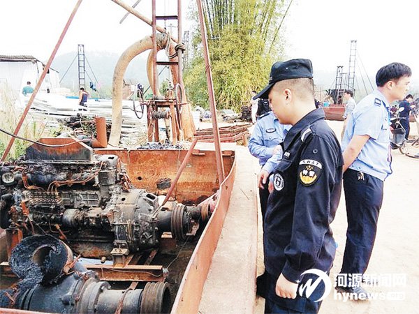 整治行動中依法搗毀、焚燒采砂船2 艘,拆除非法搭建的采砂建筑、臨時工棚7 個,收繳采砂設備一批,有力打擊浰江、東江河道肆意非法采砂行為。