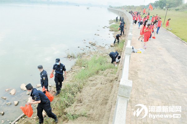 11 日19 日,團河源市委、市志愿者聯合會聯合團東源縣委、團源城區委和河職院團委,啟動主題為“美麗東江,志愿同行” 的環保清潔志愿服務活動。活動當日,源城區、東源縣、市直及省屬單位、學校和社會志愿者服務隊的300 多名團員青年和志愿者來到市區東江和新豐江的3 個沿江路段和河灘,進行環保志愿服務,把路段河灘上的垃圾清理干凈。志愿者們分工合作,特別是獲得全國“青年文明號”榮譽稱號的市公安局特警支隊的志愿者,他們下到河岸,將河岸邊的垃圾清理干凈,讓東江和新豐江兩岸的風景顯得更加美麗迷人。
