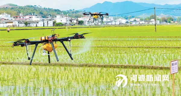 無人飛機噴藥作業讓我市農業生產更加高效。市檔案局 楊海榮 攝