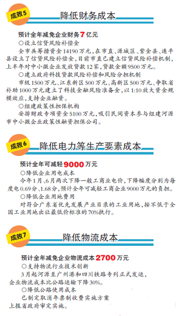 據悉,降成本是供給側改革的五大任務之一,按照中央和省關于推進供給側結構性改革的有關部署要求,我市積極落實供給側結構性改革,印發出臺了《河源市供給側結構性改革降成本行動方案(2016-2018 年)》、《降低費(險金)率水平工作實施方案》和督查工作方案,從降低制度性交易成本、降低企業人工成本、降低稅負成本、降低社會保險費成本、降低財務成本、降低電力等生產要素成本、降低物流成本等7 個方面,推動我市降成本政策措施精準落地。目前,我市降成本行動各項政策措施落實工作正在加快推進,一些政策措施對減輕企業負擔、激發經濟活力的積極作用已逐步顯現。