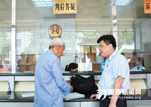 立案登記制改革實施首日,市中院院長肖文浩到立案窗口向群眾了解立案情況。