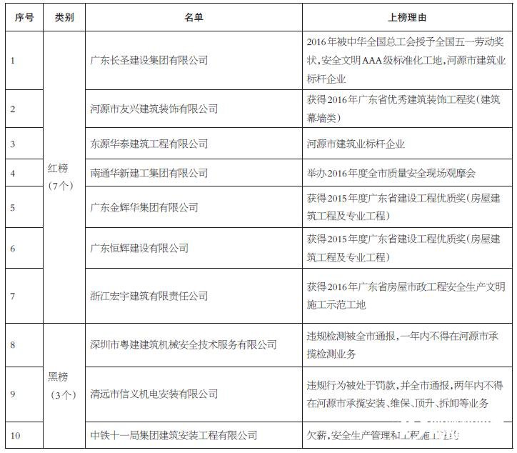 2016年度上半年建筑行業(yè)誠信“紅黑榜”名單