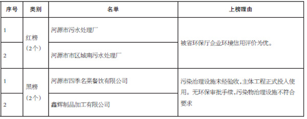 河源市2016年上半年環(huán)保誠信"紅黑榜"名單