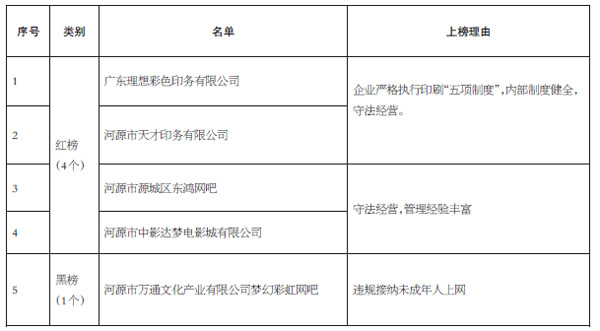 2015年度文化市場(印刷企業(yè)、網(wǎng)吧)誠信紅黑榜名單
