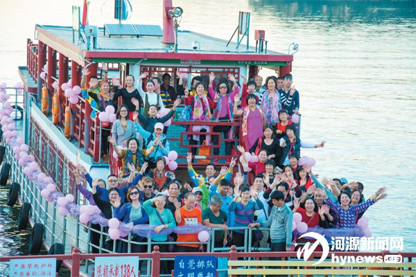 百對夫妻游萬綠湖,登上幸福彼岸。
