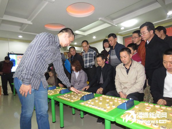 據了解,本次象棋公開賽分為成年組、少年組(10 至16 周歲)、兒童組(10 周歲以下)三個組別。賽事不但吸引了我省各市名手參賽,還吸引了遼寧、浙江、湖南、湖北、河南、河北、江西等省份的名將前來參賽,參賽人員共99人。他們齊聚河源,在這里用棋藝一決高下。19日,象棋特級大師莊玉庭先生也受邀來到比賽現場,與現場的象棋愛好者們進行1對10車輪戰表演賽,由于實行了雙方各40分鐘限時賽制,使得1對10車輪戰更為名符其實,吸引了眾多市民觀賞。