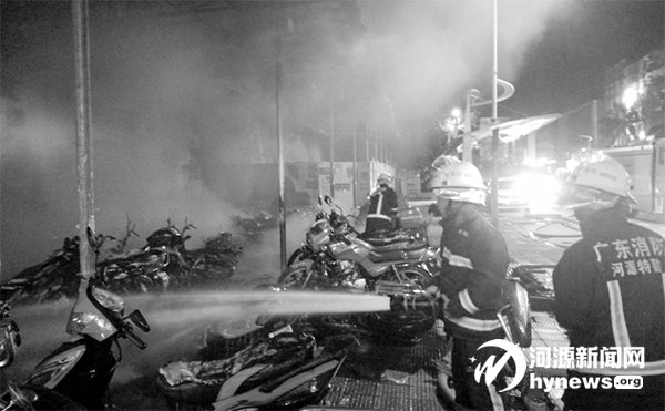 消防官兵到達現(xiàn)場后 發(fā)現(xiàn),車棚內(nèi)摩托車著火 引燃棚頂,火勢較大。指 揮員立即命令鋪設(shè)一條干 線三支水槍,對火勢進行 全方位的壓制,僅用10 余 分鐘就將火勢撲滅。由于 消防官兵及時到場處置, 該次起火未對臨近的美宜 佳超市和龍記金屬廠內(nèi)建 筑設(shè)施造成影響,最大程 度減少了火災造成的損 失。明火撲滅之后為防止 復燃,消防官兵對現(xiàn)場持 續(xù)澆水降溫。據(jù)現(xiàn)場統(tǒng) 計,被不同程度燒毀的摩 托車共36 輛,所幸未造成 人員傷亡,引起火災的原 因仍在進一步調(diào)查中。