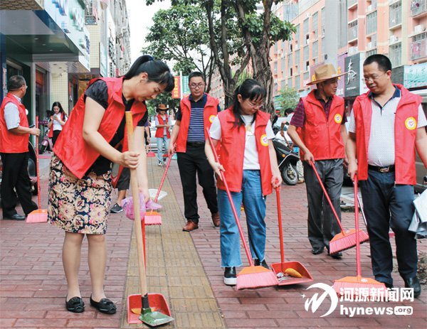 啟動儀式結(jié)束后,由市一中、源城區(qū)衛(wèi)星小學師生、家長組成的志愿者隊伍分別到學校周邊街道開展志愿清掃活動。