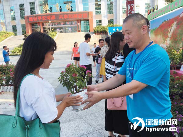 10 月8 日下午,在市體育館 正門廣場,河源首屆市花簕杜鵑 花展正式閉幕,創園辦的工作人 員也把其中的名貴花種贈與了 600 余名為創園盡心盡力的志愿 者。創園辦相關工作人員說,這 一來是對志愿者工作的肯定,二 來也是希望志愿者能進一步把 河源的簕杜鵑介紹給更多的人, 讓更多的市民了解并喜愛上我 們的市花。