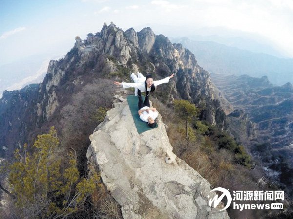 3 月8 日,國際婦女節(jié),河南洛陽老君山,一群女瑜伽愛好者來到河南洛陽伏牛山主峰老君山,在懸崖絕壁上練瑜伽,度過了一個特殊的“三八”婦女節(jié)。