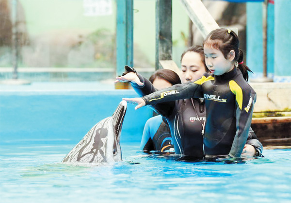 前日,成都自閉癥兒童“晨晨”來到成都海昌極地海洋公園和海豚互動。“晨晨”在專業(yè)老師的指導下和海豚握手、聽海豚唱歌等,來幫助其改善腦部神經的反應。海豚等動物來輔助治療自閉癥,就是通過超聲波來刺激腦部的活動,從而達到改善語言、情緒低落等孤獨癥病狀的目的。