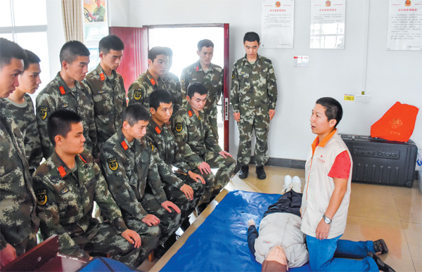 市紅十字會醫(yī)護(hù)人員根據(jù)多年經(jīng)驗把一些急救常識向官兵們進(jìn)行了細(xì)致地講解,并與他們進(jìn)行了互動問答。隨后,官兵們按照培訓(xùn)內(nèi)容進(jìn)行了實際操作。
