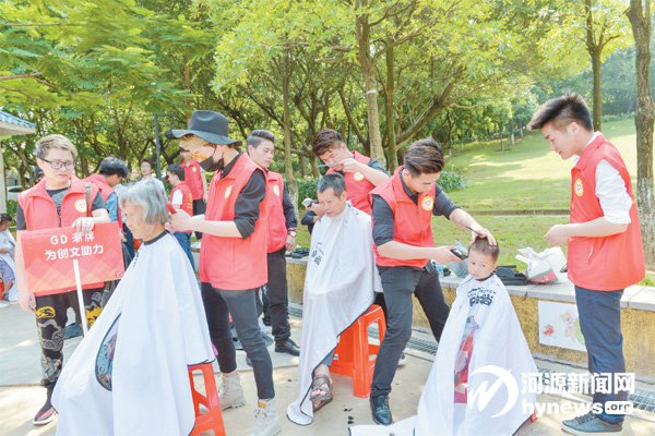 前日上午,由市區30 多家美容美發機構共同組織開展的河源美發界助力河源創文進社區活動在市區茶山公園啟動,120 多名美容美發從業者加入到志愿者行列,用手中的美發工具免費為廣大市民進行美發。即日起,這些美發志愿者將分組到市區40 多個小區開展美發志愿公益活動,用實際行動加入到創文行列中來。