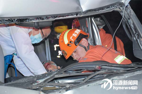3日凌晨0時(shí)24分,東 源縣仙塘鎮(zhèn)蝴蝶嶺紅綠燈處發(fā)生交通事故,有人員被困。接警后,東源消防中隊(duì)趕到現(xiàn)場(chǎng)發(fā)現(xiàn),一輛貨車與一輛面包車相撞,面包車車頭已嚴(yán)重變形,司機(jī)的雙腿被死死夾住無法動(dòng)彈。消防官兵馬上利用液壓剪和 液壓擴(kuò)張器對(duì)駕駛室進(jìn)行破拆,10多分鐘后成功將被困人員救出。