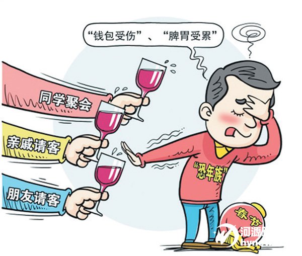 春節臨近,原本是家人團聚、美滿和睦的美好佳節,卻因為高漲的人情消費、攀比之風,讓不少年輕人淪為“恐年族”。不僅“錢包受傷”,“脾胃受累”也是不少年輕人的擔憂。春節的生活幾乎就是從一個飯局到另一個飯局,從喝白酒到喝啤酒,身體實在是吃不消,過個年比上班還累。 “衣錦還鄉”一直是中國傳統觀念中在外拼搏的人回家最渴望的心理預期,而如今的生活壓力、成功標準讓不少人無所適從。