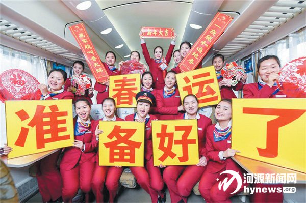 2017年春運(yùn)從1月13日開始至2月21日結(jié)束。昨日,在南昌開往北京西的Z66次列車上,工作人員打出“春運(yùn)準(zhǔn)備好了”的標(biāo)語。據(jù)新華社我市也開啟了春運(yùn)模式,將全力保障春運(yùn)平安暢通。據(jù)了解,今年春運(yùn)我市預(yù)計(jì)發(fā)送旅客181萬人次,同比減少2.3%。