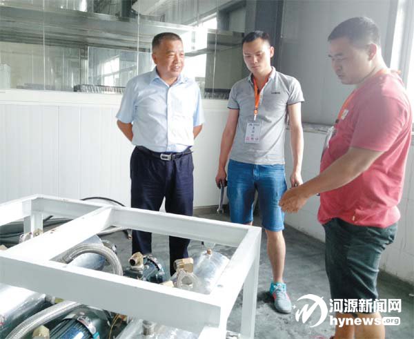 王忠平(左一)在車間檢查工作。本報(bào)記者張濤攝