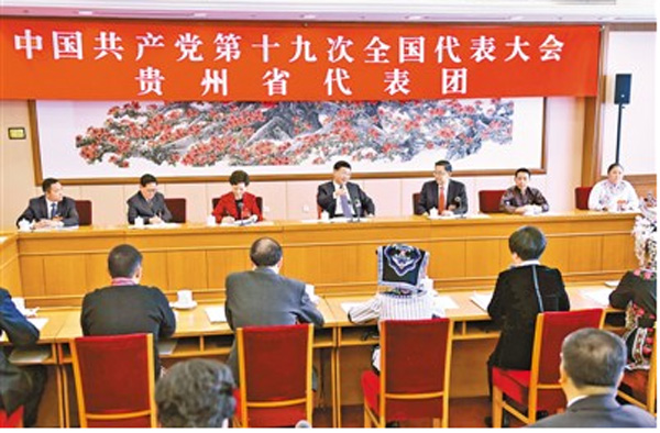 10月19日,習近平同志參加黨的十九大貴州省代表團討論。新華社記者 李濤 攝