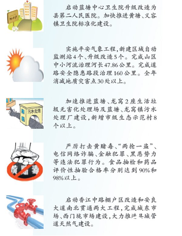紫金還將抓好農村路網建設,鞏固“四好農村路”示范縣成果,啟動“城鄉交通運輸一體化試點”創建工作,完成新農村公路硬化工程100 公里,重建(加固)藍塘鎮麻園橋等5 座危橋。完善公共交通設施,動工建設縣城一級公路客運站、九和綜合服務站,升級改造藍塘客運站。同時,為進一步保障人民群眾生產生活用水,紫金將加快推進水利設施建設,切實解決15.5 萬群眾飲用水問題。