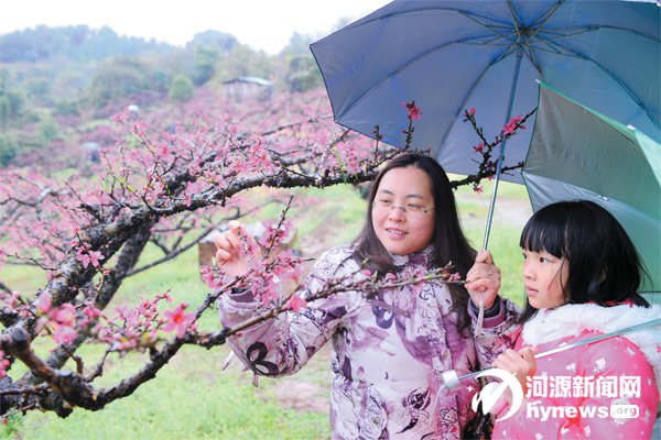美麗的桃花自然也吸引了不少游客和攝影愛好者前來賞花拍照。游客們拿著相機(jī)、手機(jī)不停按動(dòng)快門,記錄桃花優(yōu)美的身姿,表達(dá)自己喜悅的心情,同時(shí)也希望新的一年,好運(yùn)連連,人生如花。一位汕頭來的游客撐著雨傘漫步在桃園,時(shí)不時(shí)停下腳步用相機(jī)拍下自己喜歡的那幾株桃花。“雖然下雨了,但是雨中的桃花有雨的獨(dú)特味道,看到的是另外一種境界。”
