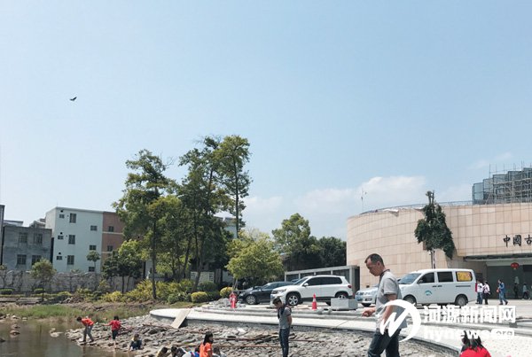 一些孩子在人工湖邊戲水,存在安全隱患。