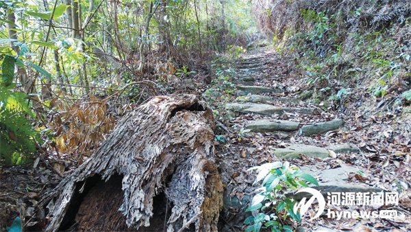 據當地村民介紹,這古道、古亭建于清代。以前這古道上還有為過路人、征途客開設的茶亭,從凹腳下通往海豐途中的 “石盤瀝”擔水煮茶、煮飯,方便天天往來披星戴月挑送鹽頭、桁枋、山貨等的貧苦人解渴和充饑。由于時代的發展變化,如今 “參天亭”無人管理,僅存遺址,但古道仍可通行。