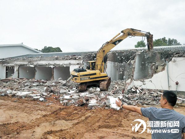 市國土資源執法監察隊伍對違法建筑進行整治。