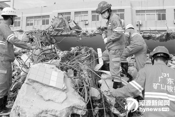 這支隊伍曾多次參加搶險救援任務,有著豐富的救援經驗。如紫金縣九和汕湛高速挖樁井“6·18”氣體窒息事故搶險救援、和平縣大壩鎮龍獅村瓷土礦場“5· 22”山體垮塌事故搶險救援、紫金縣鳳安鎮雞籠山鎢礦“12·8”礦難搶險救援等等。尤其是在深圳“12·20”滑坡事故搶險中,河源市礦山救護隊是第一支抵達的礦山救援專業隊伍,也是完成任務后最后離開的礦山救援隊伍。河源市礦山救護隊總工程師袁聰回憶,當時救護隊的第一批隊員抵達現場后,顧不上疲勞和饑餓,根據指揮部的任務要求,在光明新區消防大隊2 名消防員的配合下,攜帶生命探測儀(DKL)、人體搜尋儀(STO1)前往現場開展搜救工作。事故當天陰雨綿綿,隊員們全力開展搜救工作,使用救援裝備搜尋生命跡象,顧不上大雨和寒冷,一直堅守至次日凌晨4 時,才回至休息處。隨后,在休息不足3 個小時的情況下,救護隊又接到指揮部命令,迅速參與救援工作。該隊全體參戰指戰員連續戰斗15 天,積極配合指揮部命令,盡心盡力為搶救遇險遇難人員爭取一線生機,受到了指揮部各位領導的高度評價。