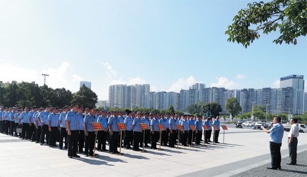市城監(jiān)大隊(duì)隊(duì)員整裝待發(fā)給力創(chuàng)文。