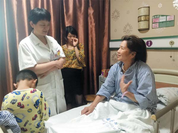 醫生在病房了解楊女士(右一)術后恢復情況。
