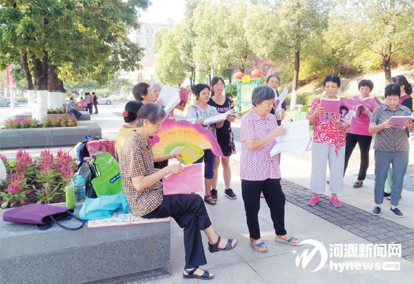 客家文化公園里,市民經(jīng)常結(jié)伴在樹蔭下唱歌。