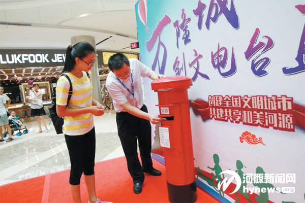 記者在現(xiàn)場看到,萬隆城一樓還設置了“創(chuàng)文電臺直播間”和“創(chuàng)文信箱”。據(jù)介紹,“創(chuàng)文電臺直播間”由商超內(nèi)的主持人每天定時播報創(chuàng)文相關知識和內(nèi)容,提升全民創(chuàng)文意識;“創(chuàng)文信箱”則用來收集市民購物反饋和對我市創(chuàng)文工作的意見和建議。
