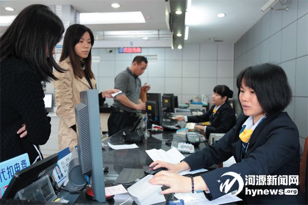 營業廳工作人員給客戶辦理電費銀行代扣。