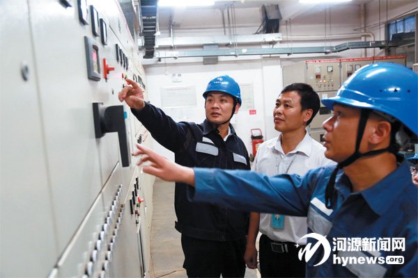 河源源城供電局高埔所員工在企業配電房,了解設備運行情況。