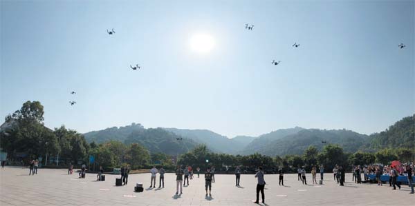 活動啟動儀式現場,無人機升空。鄒財麟 攝