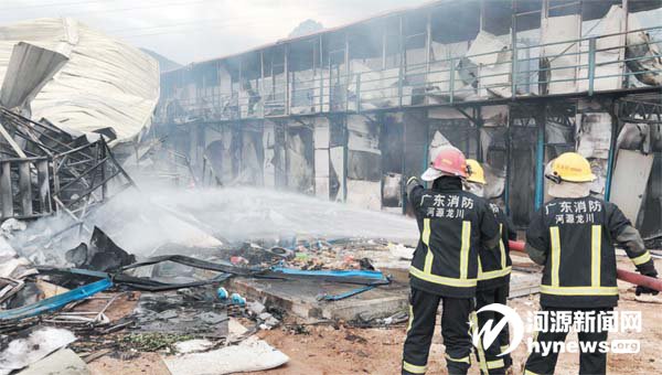 25日16時許,東源縣柳 城鎮一工地著火,大火迅速 蔓延至該工地3 棟兩層板 房,現場滾滾濃煙,火勢較 大。龍川消防中隊接報后迅 速趕往現場,并立即展開撲 救。經過一個多小時的撲 救,現場明火被完全撲滅。 盡管無人員傷亡,但3 棟板 房已全部被燒毀成灰。