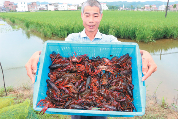 林寨鎮新農村示范片區大力發展小龍蝦養殖。