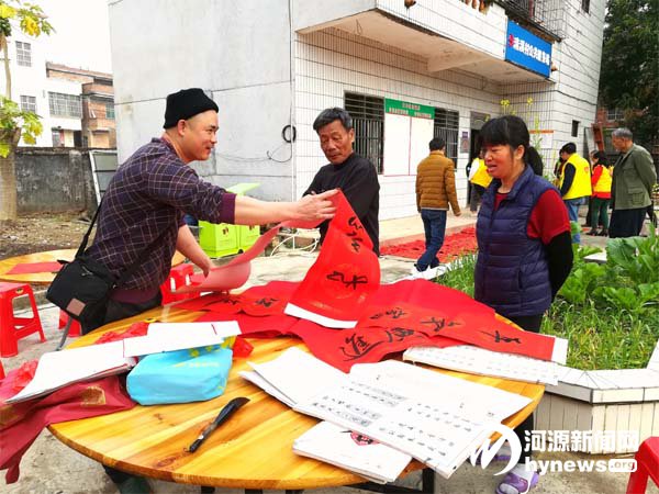 此次活動由市民政局組織,河源 市亮點志愿者服務隊、河源市眾愛志 愿者服務隊、東源電臺志愿者服務隊 共同參與,現場除了送春聯,還提供義 剪服務。清溪村扶貧工作隊第一書記 廖永清表示,村里交通比較閉塞,生活 不便利,村兩委為了進一步提高服務 群眾的能力,為村民做實事好事,讓群 眾過個祥和喜慶的春節,所以發起了 此次便民活動。
