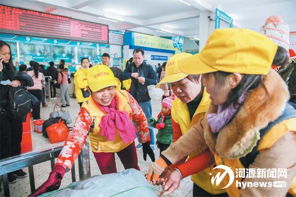 昨日啟動儀式后,來自中國 石化銷售有限公司廣東河源石 油分公司、廣東通驛公司河源區 域、河源粵運河源客運分公司、 市人民醫院、市中醫院、市婦幼 保健院、市紅十字會志愿者公益 宣傳服務隊、市亮點志愿者服務 中心、市眾愛志愿者服務中心以 及市公安局特警支隊和巡警支 隊等單位的近百名志愿者分別前 往河源火車站、新城汽車客運站、 河源汽車客運總站、部分加油站 和高速公路服務區開展服務春運 “暖冬行動”。服務不變,溫暖不 變,志愿者將分布在車站候車室、 售票處、安檢口等各個崗位,為匆 匆趕路的旅客提供咨詢引導,為 行李繁多的乘客提箱拎包,為行 動不便的旅客提供重點幫扶和貼 心服務,給旅客送熱水,在新城汽 車客運站,志愿者還專門設立了 愛心義診點,為旅客提供免費醫療 服務。